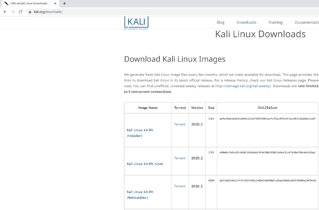 Para utilizar el entorno de pentesting de Kali Linux, primero se debe preparar el formato con el que se ejecutará la imagen descargada desde:
